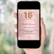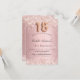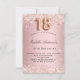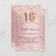 For an elegant 18th birthday party. A blush pink gradient background. Decorated with faux glitter dust. Personalise and add a name and party details. The name is written with a hand lettered style script. Number 18 is written with rose gold coloured balloon style font.