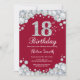 18th Birthday Burgundy Red and Silver Diamond Invitation