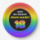 18th Birthday: Colorful Rainbow # 18, Custom Name Paper Plate