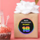 This fun and upbeat birthday round sticker design features the number “18“ with a vibrant multicolored rainbow spectrum inspired gradient pattern, along with the message “HAPPY 18th BIRTHDAY,”, and a customisable recipient name. Stickers like these might be used when celebrating somebody’s 18th birthday. [~Z0000637]