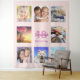 For a 18th birthday, celebrating her life with a collage of 8 of your photos of her friends, family, interest or pets. Personalise and add her name, age 18 and a date. Date of birth or the date of the birthday party. Pink and purple coloured letters. Girly and trendy rose gold, blush pink background colour. Use as party wall decor, welcome banner and as photo booth, photo backdrop.