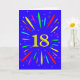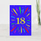 An explosive 18th birthday card! What a wonderful way to send birthday greetings. The number 18 in bright yellow with an explosion of bright colours and stars.