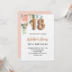 An elegant invitation for a 18th birthday party. A chic white background. Decorated with a rose gold and blush pink watercolored rose flower, floral, green eucalyptus leaves, sprigs, greenery and faux gold sprigs. Personalise and the name and party details. Black and golden letters. The name is written with a modern hand lettered style script. Number 18 is written with a golden balloon style font.
