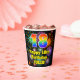 This fun and colourful birthday paper cup design features a large number “18” having a rainbow spectrum gradient inspired pattern. It also features the message “Happy 18th Birthday,”, and an editable name. The background features a colourful pattern inspired by bursting celebratory fireworks. Colourful, vibrant paper cups like this might be fun to use at a birthday party/celebration being held in celebration of somebody’s eighteenth birthday. [~Z0000539]