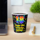 This fun and cheerful birthday themed paper cup design features a large number “18” with a rainbow spectrum gradient inspired pattern, along with the message “Happy 18th Birthday,”, and a custom name. The background features a colourful pattern inspired by a field of stars. Colourful, vibrant paper cups like this might be fun to use at a birthday celebration being held to celebrate somebody’s eighteenth birthday. [~Z0000540]