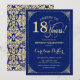18th Birthday - Gold Navy Blue Damask Invitation