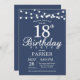 18th Birthday Invitation with String Lights. Blue Background. Men or Women Lady Elegant bday Invite. 13th 15th 16th 18th 20th 21st 30th 40th 50th 60th 70th 80th 90th 100th, Any age. For further customisation, please click the "Customise it" button and use our design tool to modify this template.