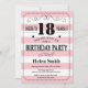 18th Birthday Invitation Pink and White Stripes