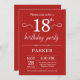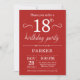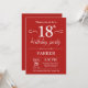 18th Birthday Invitation with Red Background. Adult Birthday. Men or Women Bday Invite. 13th 15th 16th 18th 20th 21st 30th 40th 50th 60th 70th 80th 90th 100th, Any age. For further customisation, please click the "Customise it" button and use our design tool to modify this template.