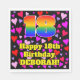This colourful and cheerful birthday-themed paper napkin design features a large number “18” having a rainbow spectrum gradient inspired pattern. It also features the message “Happy 18th Birthday,”, and a personalised name. The background features a pattern of red, purple, and pink heart shapes. Fun, joyful paper napkins like this might be fun to have at a birthday celebration/party being held to celebrate somebody’s 18th birthday. [~Z0000550]