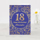18th Birthday Navy Blue and Gold Floral Pattern Card