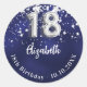 A sticker for an 18th birthday party. A navy blue background colour with faux silver stars. The blue colour is uneven. Add your name, text.