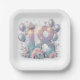Sparkling Iridescent 18th Birthday with Tiara Balloons and Flowers Paper Plates