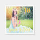 A napkin for a 18th years old girl's birthday party with the number 18 and the text Happy Birthday in faux gold. Template for your photo of the birthday girl.