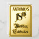 The front of this elaborate eighteenth birthday celebration foil invitation/announcement design features the message “18th Birthday Celebration” in ornate script-style text. It also features a personalised name. The back features personalised details about the event, such as the date, time, venue/location, and any other information that may be important. Fancy, luxurious, editable invitations like these might be used to invite guests to a birthday celebration/party being held in celebration of somebody’s eighteenth birthday. [~Z0000596]
