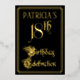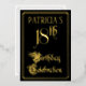 The front of this luxurious and ornate foil eighteenth birthday party/celebration invitation design features the message “18th Birthday Celebration” in elegant script-style text. It also features a custom name. The background of the front is coloured black by default (although it can be customised to a different colour). The back features personalised details about the event, such as the date, time, location, and any other information that may be relevant. Opulent, elegant, personalised invitations like these might be used to invite guests to a birthday party/celebration being held to celebrate somebody’s eighteenth birthday. [~Z0000589]