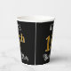This ornate and opulent birthday themed paper cup design features a customisable name and the message “18th Birthday Party”. The large number “18th” has an imitation/faux gold-inspired colouring pattern, the words “Birthday Party” are in fancy script-style text, and the background is coloured black by default (although it can be customised). Elegant, luxurious paper cups like this might be used at a birthday celebration being held in celebration of somebody’s eighteenth birthday. [~Z0000567]