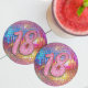 Do you love the 80s dancing disco ball? The 70s disco ball? Look at our 18th Birthday Party Gold Pink Glitter Disco Ball Paper Coaster! Celebrate in style with our vibrant birthday disco ball paper coaster featuring a colourful gold mirror disco ball and dazzling typography with a digital glitter and gold effect. This disco birthday party paper coaster is enhanced with stars using a lovely pink and gold digital effect. This paper coaster promises a night of sparkle and fun. Get ready to set the perfect tone for an unforgettable 18th party! This design brings a touch of glam to your special day. Customise with your event details, and prepare to shine at your disco birthday party!