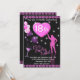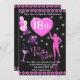 18th Birthday Party Invitation, pink and black with cocktail glass, balloons and female dancer
