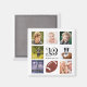 A magnet for a 18th birthday party for a boy, celebrating his life with a collage of 8 of your photos. Templates for the age 18 and a date. Date of birth or the date of the party. Black coloured letters. White background. Perfect as a party favour, keepsake or as a save the date reminder for your guests.