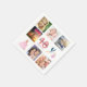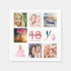 A napkin for a girly 18th birthday party, celebrating her life with a collage of 8 of your photos. Templates for a name, age 18 and a date. Date of birth or the date of the party. Coral and burgundy coloured letters. White background.