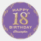18th Birthday Party Purple and Gold Glitter Frame Classic Round Sticker