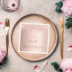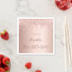 A napkin for a girly and glamourous 18th birthday party. A faux rose gold metallic looking background with an elegant faux rose gold glitter drips, paint drip look. The text: The name is written in dark rose gold with a large modern hand lettered style script. Template for name, age 18 and a date.