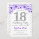 Elegant design in faux glitter silver, purple and white. Stylish floral invitation with diamonds and roses. Perfect for a glam celebration. Please message me if you need further customization.