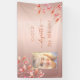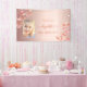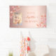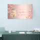 A banner for a girly and glamourous 18th birthday party. A faux rose gold metallic looking background with pink and rose gold florals. Personalise and add your own photo, a name written in dark golden with a large modern hand lettered style script with swashes. To keep the swashes only delete the sample name, leave the spaces or emoji's in front and after the name. Templates for a date and age 18.