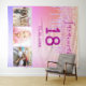 For a 18th birthday party. A collage of 3 of your photos of herself friends, family, interest or pets. A purple, pink and rose gold colored gradient background. Decorated with faux glitter drips. Personalize and add her name, age 18 and a date. Date of birth or the date of the birthday party. Purple colored text. Perfect for a surprise party! Use as a welcome banner, wall decoration or as a photo booth backdrop.