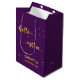 Elegant and modern for a 18th birthday party. Girly purple backdrop and faux gold text written with a trendy hand-lettered style script: hello eighteen. With golden dots as decor. Templates for name and date, golden letters.