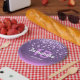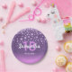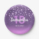 An elegant and glamourous sweet 18th birthday party paper plates. Girly purple faux glitter and pink gradient with a faux pink diamond sprinkle. Templates for a name, age 18 and a date. Date of birth or date of the party/anniversary. White and pink coloured letters. The name is written with a hand-lettered style script.