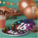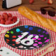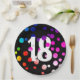 Neon rainbow dot pattern on black background for 18th birthday party.
