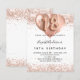 For an elegant 18th birthday. A stylish white background. Decorated with rose gold, pink confetti and balloons. Personalise and add a name, and party details. The name is written with a hand lettered style script, number 18 with balloon style fonts.