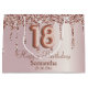 Modern and elegant, you will adore this gift bag. It features a rose gold faux metallic background with sparkling glitter drips, over which is '18' in metallic foil balloon. Very easy to personalise for that special birthday.