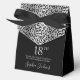 This elegant 18th Birthday Silver Leopard Print Thank You favor box with shimmering silver faux foil, the birthday girl's name in a trendy script font, and tied with an beautiful black bow would be perfect for your event. It would be great for a candy station, on a thank you gift table, or at each place setting with a favor. Be sure you order enough for all your guests.
