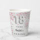 For a glamorous and girly for a 18th birthday party. A faux silver metallic looking background. On the front and the back: Personalize and add a name, and a date. Decorated with pink and faux silver glitter dust. Number 18 is written with a balloon style font.