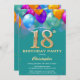 18th Birthday Teal and Gold Colourful Balloons Invitation