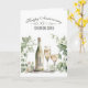 Watercolor wine bottle and two wine glasses, set against a soft green floral frame of ivy and eucalyptus, for the couple's 18th wedding anniversary.