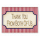 Folded glossy Thank You note from our original red, white & blue patriotic themed Wedding series reflecting the graphic styles popular in the 1904 U.S. Presidential Campaign (which was won by Teddy Roosevelt, famous for his Show-No-Fear "Rough Rider" days in the Spanish American War & his enthusiastic declarations of "Bully" when something, or someone tickled his fancy).