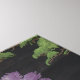 A lovely fine art print of "The Cedar Tree" created by Arthur Sanderson & Sons Ltd., a British manufacturer of fabrics and wallpaper founded in 1860. This particular design dates back to 1910 and was block-printed on machine-made paper. The design boasts a solid black background, against which sits a diagonal branch of cypress from which grows clusters of cypress evergreen sprinkled with large bunches of lilac blossoms and foliage, and hanging clusters of yellow wisteria. On the branch sits a large peacock with a rich, brown body, blue neck and head, and a full luxurious blue tail falling among the blossoms and foliage.