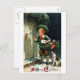 Charming 1911 print depicting a young boy and his dog are seen delivering Christmas cards and presents. The greeting " A Merry Christmas " printed along the bottom.
