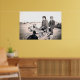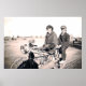 Poster showing a 1920's photo of men riding a vintage motorcycle