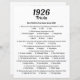 1926 Trivia Game's answer key: 1. A, 2. C, 3. A, 4. B, 5. A, 6. A, 7. C, 8. B, 9. B, 10. B, 11. B, 12. C, 13. A, 14. C, 15. A, 16. B, 17. C, 18. C, 19. C, 20. A.