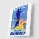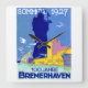 Vintage 1927 poster celebrating the centennial of Bremerhaven, Germany which was founded in 1827. The design depicts a harbour view of the city and the Roter Sand lighthouse in the background.
