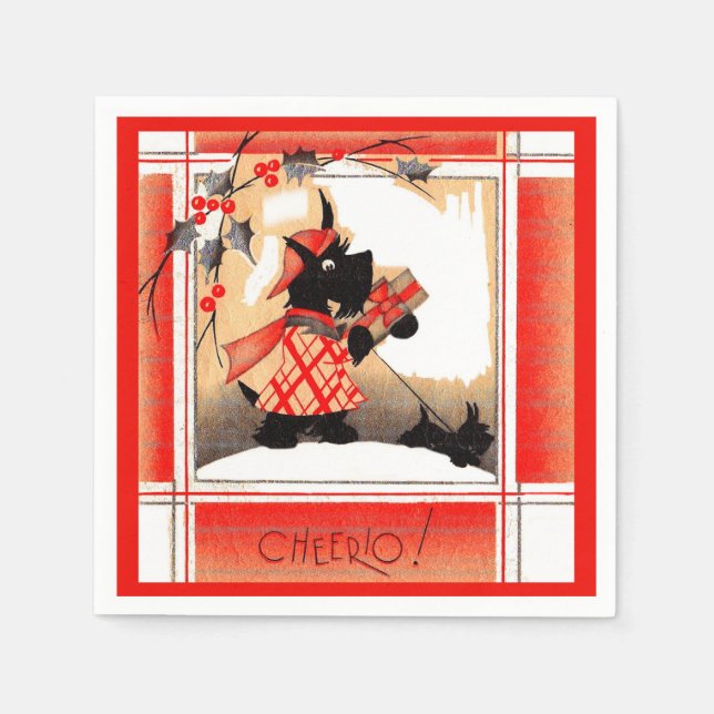 1930s Christmas Scottie dog says ‘Cheerio’ Napkin