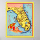 1930's "Come To Florida" Beach Towns Travel Map Poster.