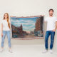 Throw blanket with a 1930s view of 8th St. in Holland, Michigan showing 1940s era cars and shops.