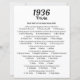 1936 Trivia Game's answer key: 1. C, 2. B, 3. C, 4. C, 5. A, 6. C, 7. C, 8. A, 9. B, 10. B, 11. B, 12. A, 13. A, 14. C, 15. B, 16. A, 17. B, 18. C, 19. A, 20. B.