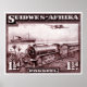 A 1937 South West Africa 1 1/2d stamp featuring a railroad train, steamship and aeroplane - all the types of transportation used in the delivery of mail to this region of Africa which is now the nation of Namibia.